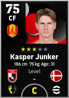 . Kasper Junker is a Center Forward footballer from Denmark who plays for Nagoya Grampus in eFootball 2026.
