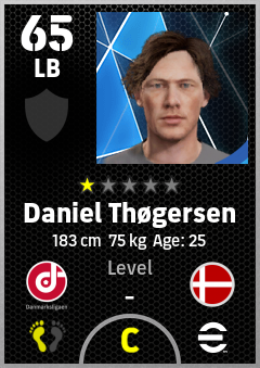 . Daniel Thøgersen is a Left Back footballer from Denmark who plays for Fredericia Rs in eFootball 2026.