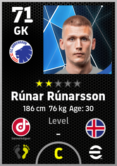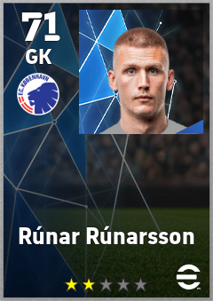 . Rúnar Rúnarsson is a Goalkeeper footballer from Iceland who plays for København Hb in eFootball 2026.