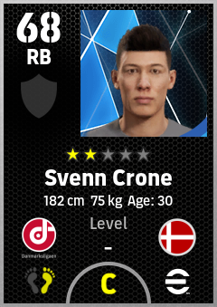. Svenn Crone is a Right Back footballer from Denmark who plays for Fredericia Rs in eFootball 2026.