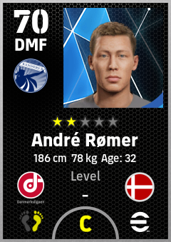 . André Rømer is a Defensive Midfielder footballer from Denmark who plays for Randers B in eFootball 2026.
