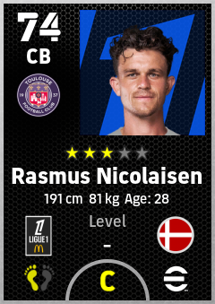 . Rasmus Nicolaisen is a Center Back footballer from Denmark who plays for Toulouse Fc in eFootball 2026.