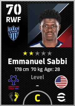 . Emmanuel Sabbi is a Right Wing Forward footballer from United States who plays for Vancouver Bw in eFootball 2026.