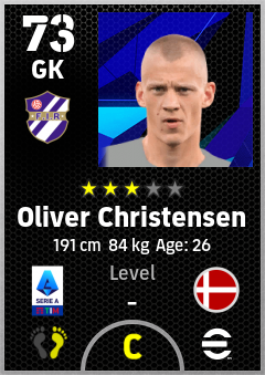 . Oliver Christensen is a Goalkeeper footballer from Denmark who plays for Firenze V in eFootball 2026.