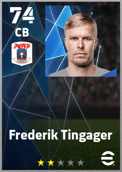 . Frederik Tingager is a Center Back footballer from Denmark who plays for Aarhus Hb in eFootball 2026.