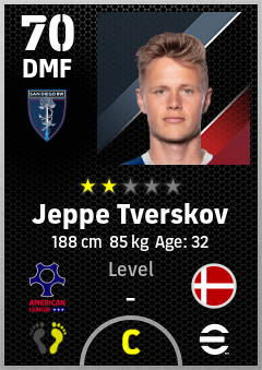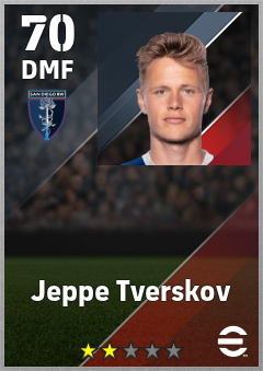 . Jeppe Tverskov is a Defensive Midfielder footballer from Denmark who plays for San Diego Bw in eFootball 2026.