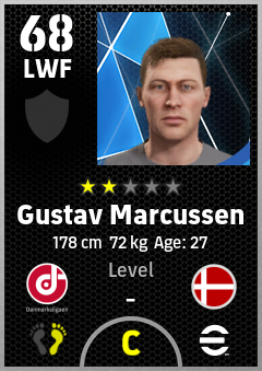. Gustav Marcussen is a Left Wing Forward footballer from Denmark who plays for Fredericia Rs in eFootball 2026.