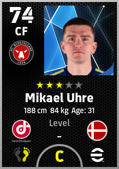 . Mikael Uhre is a Center Forward footballer from Denmark who plays for Midtjylland Sr in eFootball 2026.