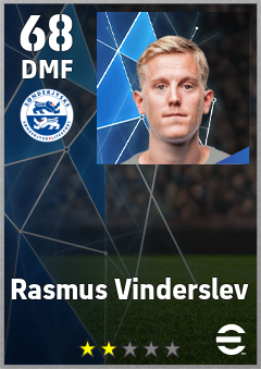 . Rasmus Vinderslev is a Defensive Midfielder footballer from Denmark who plays for Haderslev Hb in eFootball 2026.