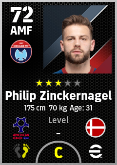 . Philip Zinckernagel is a Attacking Midfielder footballer from Denmark who plays for Chicago Rw in eFootball 2026.