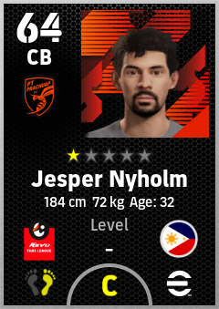. Jesper Nyholm is a Center Back footballer from Philippines who plays for Pt Prachuap Fc in eFootball 2026.