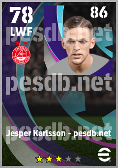 . Jesper Karlsson is a Left Wing Forward footballer from Sweden who plays for Aberdeen Fc in eFootball 2026.