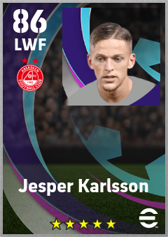 . Jesper Karlsson is a Left Wing Forward footballer from Sweden who plays for Aberdeen Fc in eFootball 2026.