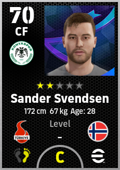 . Sander Svendsen is a Center Forward footballer from Norway who plays for Konyaspor in eFootball 2026.