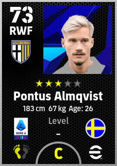 . Pontus Almqvist is a Right Wing Forward footballer from Sweden who plays for Parma Calcio 1913 in eFootball 2026.