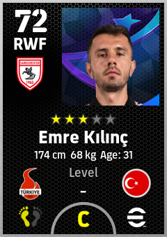 . Emre Kılınç is a Right Wing Forward footballer from Türkiye who plays for Samsunspor in eFootball 2026.