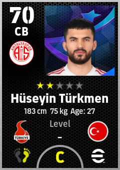 . Hüseyin Türkmen is a Center Back footballer from Türkiye who plays for Antalyaspor in eFootball 2026.
