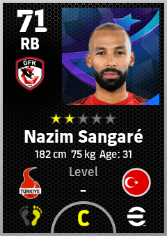 . Nazim Sangaré is a Right Back footballer from Türkiye who plays for Gaziantep Fk in eFootball 2026.