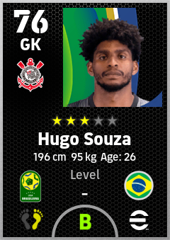 . Hugo Souza is a Goalkeeper footballer from Brazil who plays for Sc Corinthians Paulista in eFootball 2026.