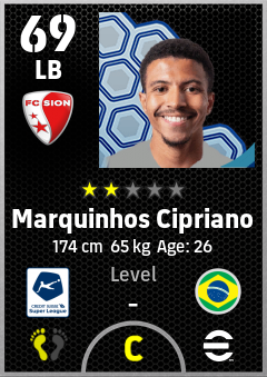 . Marquinhos Cipriano is a Left Back footballer from Brazil who plays for Sion Rw in eFootball 2026.