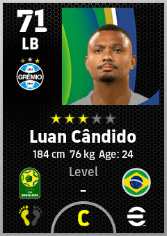 . Luan Cândido is a Left Back footballer from Brazil who plays for Grêmio Fbpa in eFootball 2026.