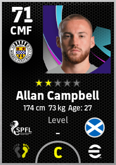 . Allan Campbell is a Center Midfielder footballer from Scotland who plays for St. Mirren Fc in eFootball 2026.