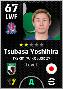 . Tsubasa Yoshihira is a Left Wing Forward footballer from Japan who plays for Kataller Toyama in eFootball 2026.