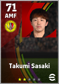 . Takumi Sasaki is a Attacking Midfielder footballer from Japan who plays for Negeri Sembilan Fc in eFootball 2026.