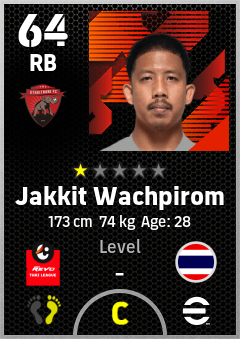 . Jakkit Wachpirom is a Right Back footballer from Thailand who plays for Uthai Thani Fc in eFootball 2026.