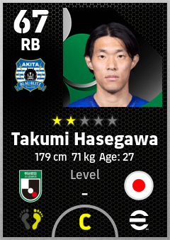 . Takumi Hasegawa is a Right Back footballer from Japan who plays for Blaublitz Akita in eFootball 2026.