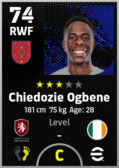 . Chiedozie Ogbene is a Right Wing Forward footballer from Republic Of Ireland who plays for Sheffield Rb in eFootball 2026.