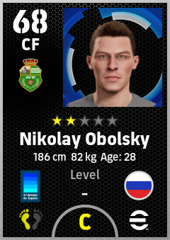 . Nikolay Obolsky is a Center Forward footballer from Russia who plays for Córdoba Vb in eFootball 2026.