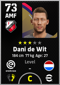 . Dani De Wit is a Attacking Midfielder footballer from Netherlands who plays for Fc Utrecht in eFootball 2026.