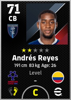. Andrés Reyes is a Center Back footballer from Colombia who plays for San Diego Bw in eFootball 2026.