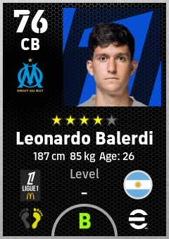 . Leonardo Balerdi is a Center Back footballer from Argentina who plays for Olympique De Marseille in eFootball 2026.