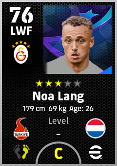 . Noa Lang is a Left Wing Forward footballer from Netherlands who plays for Galatasaray Sk in eFootball 2026.