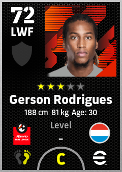 . Gerson Rodrigues is a Left Wing Forward footballer from Luxembourg who plays for Kanchanaburi Power Fc in eFootball 2026.