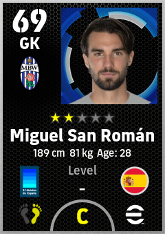 . Miguel San Román is a Goalkeeper footballer from Spain who plays for Leganés Ab in eFootball 2026.