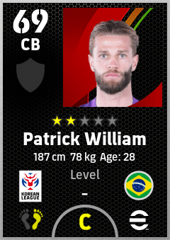 . Patrick William is a Center Back footballer from Brazil who plays for Bucheon Rw in eFootball 2026.