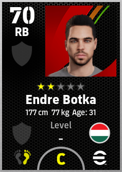 . Endre Botka is a Right Back footballer from Hungary who plays for Free in eFootball 2026.