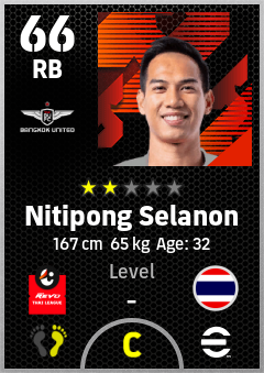 . Nitipong Selanon is a Right Back footballer from Thailand who plays for True Bangkok United Fc in eFootball 2026.