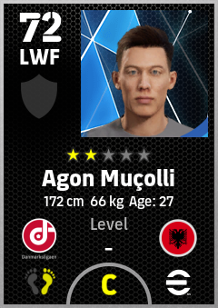 . Agon Muçolli is a Left Wing Forward footballer from Albania who plays for Fredericia Rs in eFootball 2026.