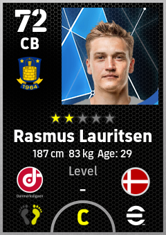 . Rasmus Lauritsen is a Center Back footballer from Denmark who plays for Brøndby Gb in eFootball 2026.