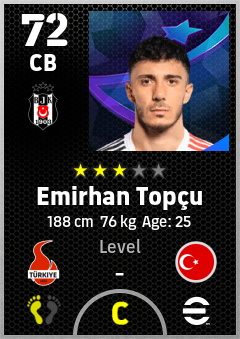 . Emirhan Topçu is a Center Back footballer from Türkiye who plays for Beşiktaş Jk in eFootball 2026.