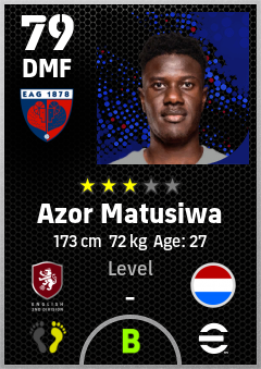 . Azor Matusiwa is a Defensive Midfielder footballer from Netherlands who plays for Ipswich Bw in eFootball 2026.