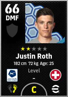 . Justin Roth is a Defensive Midfielder footballer from Switzerland who plays for Thun Rw in eFootball 2026.