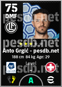 . Anto Grgić is a Defensive Midfielder footballer from Switzerland who plays for Lugano Sw in eFootball 2026.