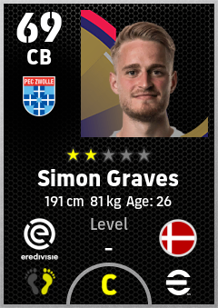 . Simon Graves is a Center Back footballer from Denmark who plays for Pec Zwolle in eFootball 2026.