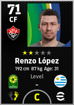 . Renzo López is a Center Forward footballer from Uruguay who plays for Ec Vitória in eFootball 2026.