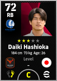 . Daiki Hashioka is a Right Back footballer from Japan who plays for Gent Bw in eFootball 2026.
